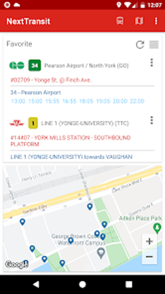 Toronto - GTA Bus Schedule เป็นแอปพลิเคชัน Android ฟรีที่พัฒนาโดย vaxtech ซึ่งให้ตารางเวลาสำหรับทุกจุดหยุดและเส้นทางในพื้นที่ Greater Toronto Area สำหรับ TTC, Viva Bus, YRT, GO bus และ Zum แอปพลิเคชันครอบคลุมเมืองใหญ่ใน GTA รวมถึง Toronto, Milton, Oakville, Guelph, Barrie, Brampton, York Region, Durham Region และ Mississauga